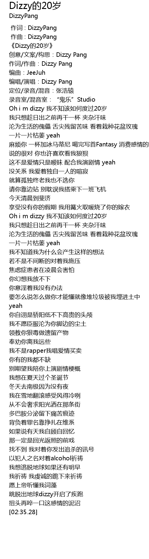 | [00:00.10] | 《Dizzy的20岁》 |