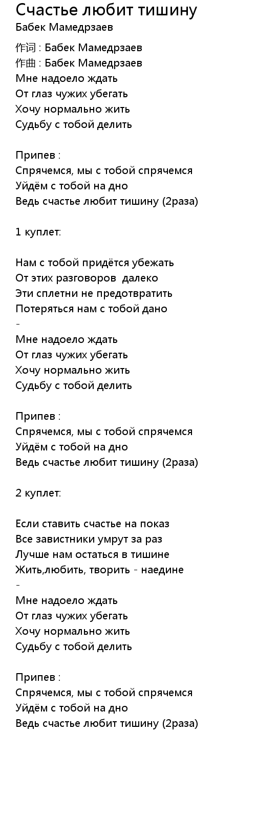 Song Счастье любит тишину