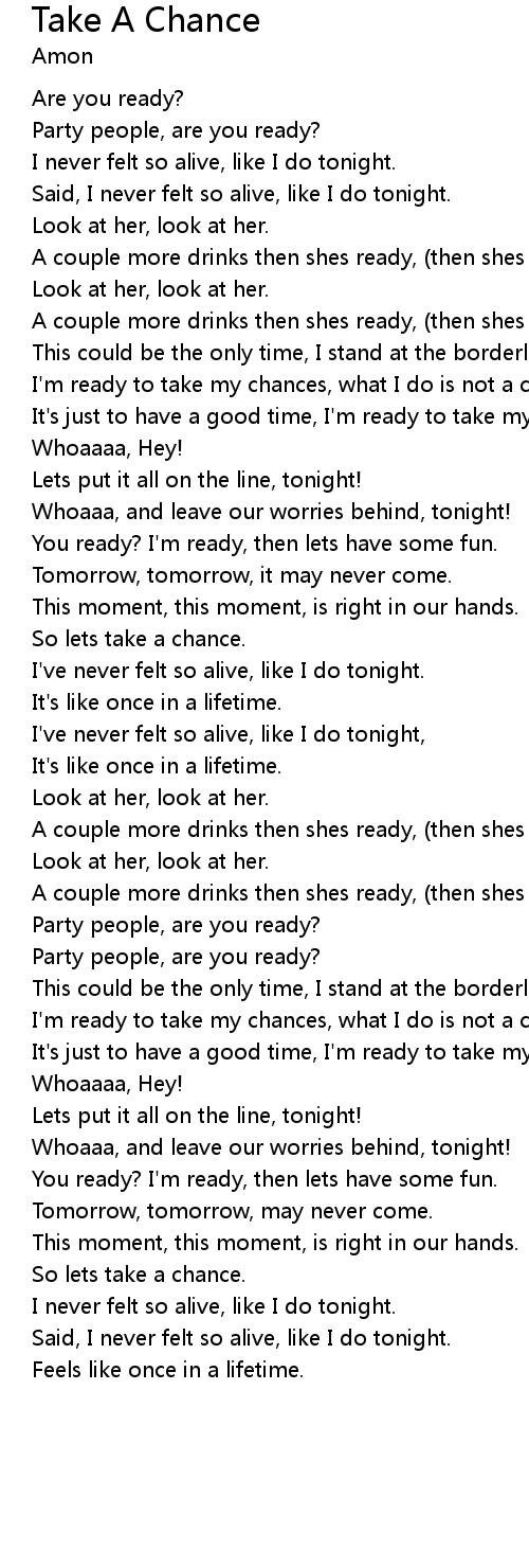 | So lets take a chance. | |