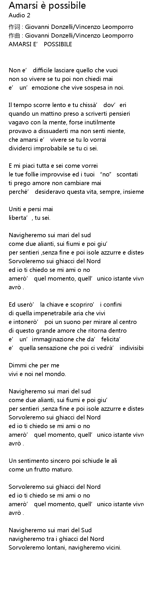 | 作词 : Giovanni Donzelli/Vincenzo Leomporro | |