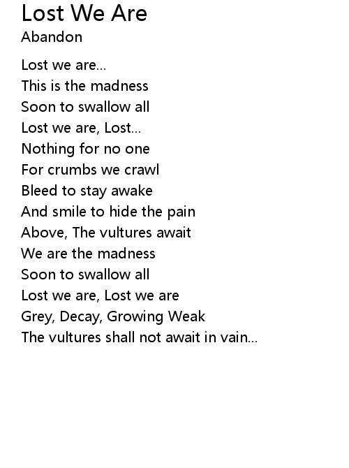 | Lost we are, Lost we are | |