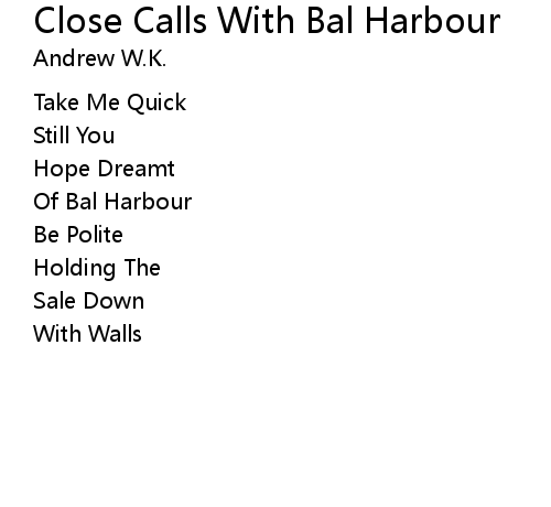 Close Calls With Bal Harbour Lyrics