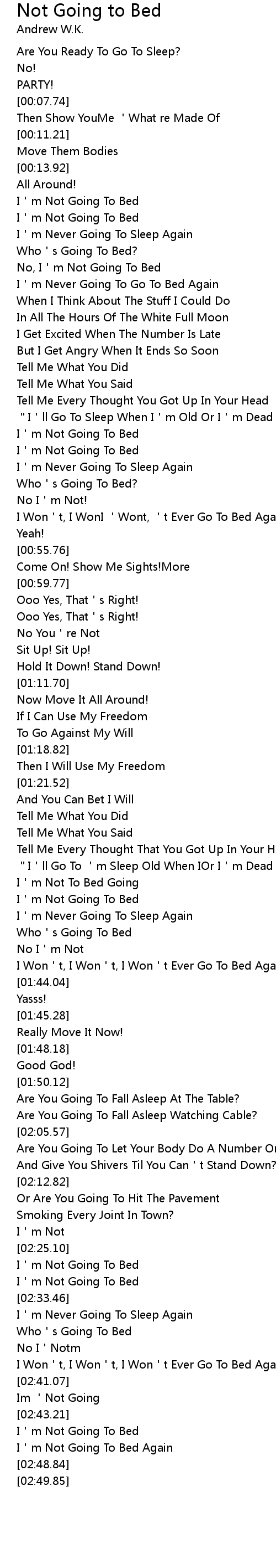| [00:52.10] | I Won t, I WonI Wont, t Ever Go To Bed Again |