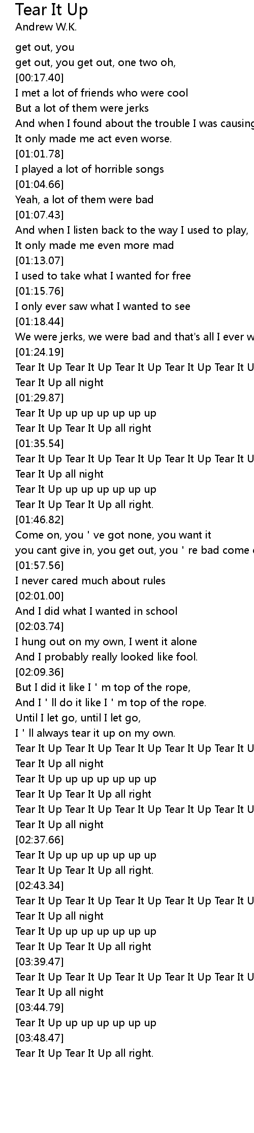 | [01:36.54] | Tear It Up Tear It Up Tear It Up Tear It Up Tear It Up |