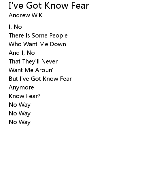 I've Got Know Fear Lyrics