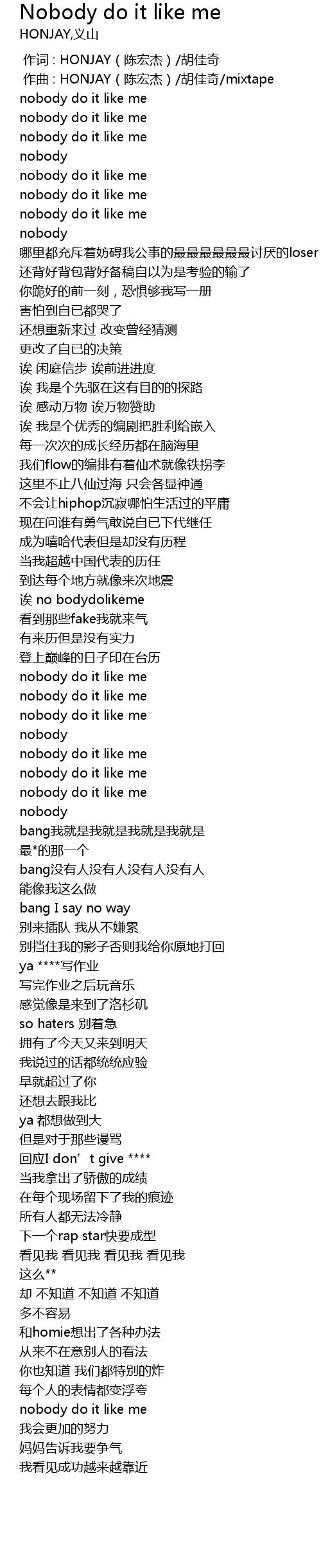 | [01:53.997] | nobody do it like me |