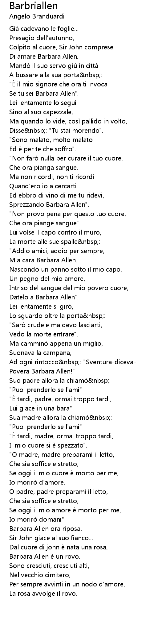 | Barbara Allen ora riposa, | |