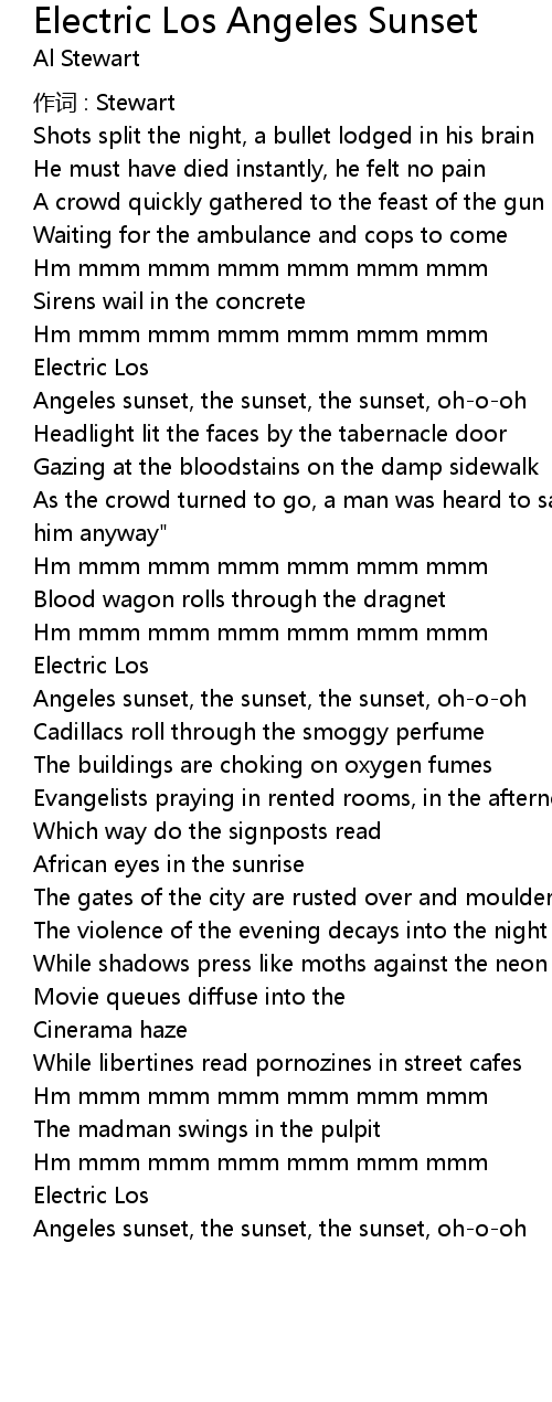 | Angeles sunset, the sunset, the sunset, oh-o-oh | |
