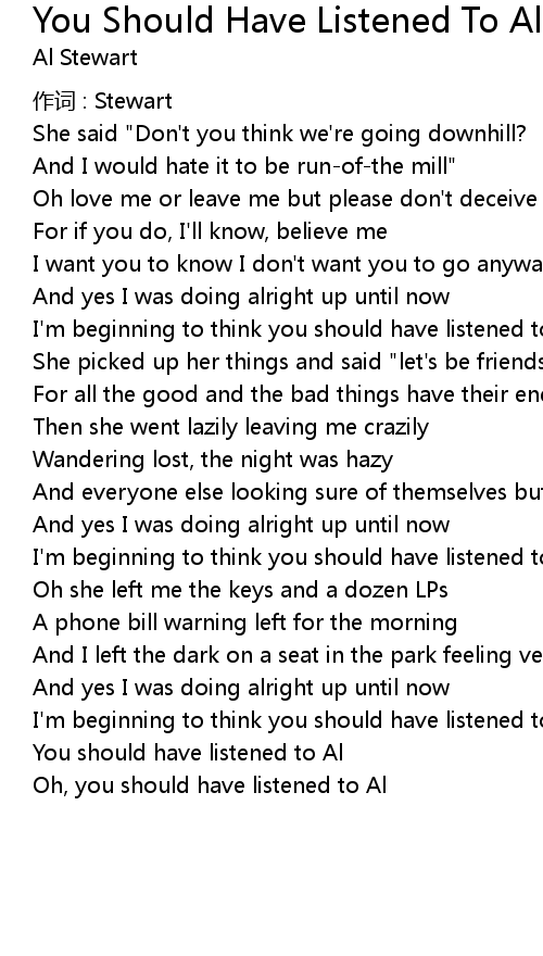| Song | You Should Have Listened To Al |