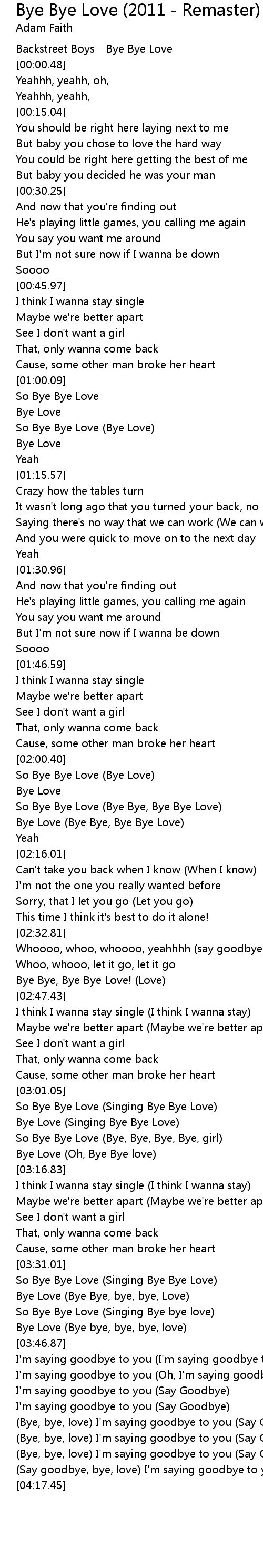 So Bye Bye Love (Bye Bye, Bye Bye Love) |