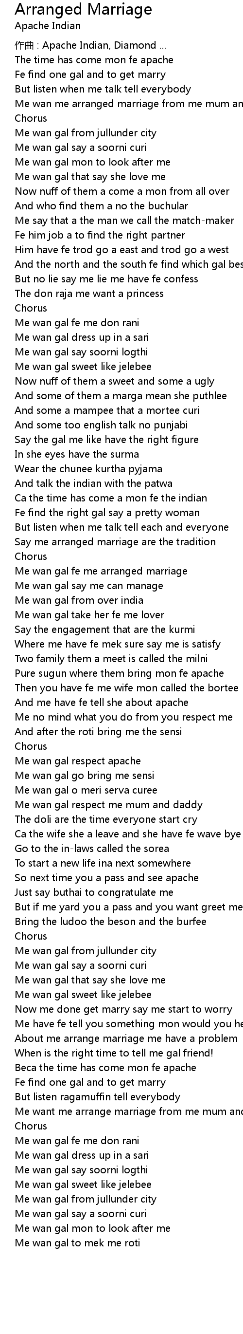 | 作曲 : Apache Indian, Diamond ... | |