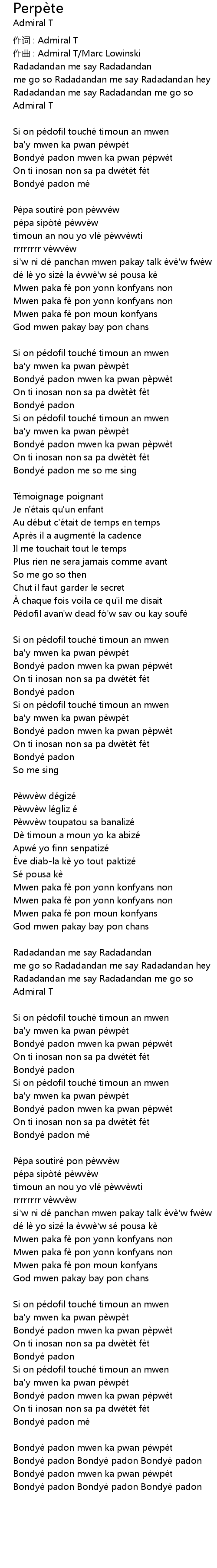 | Bondyé padon mwen ka pwan pè wpè t | |