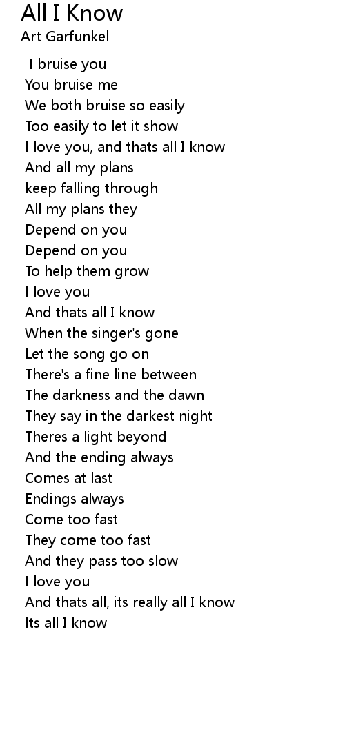 I love you, and thats all I know |