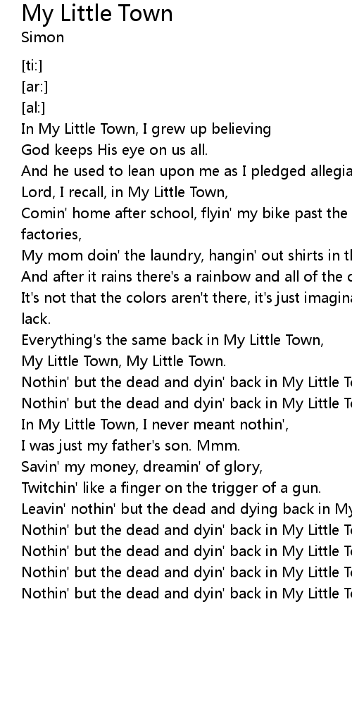 Leavin' nothin' but the dead and dying back in My Little Town. |