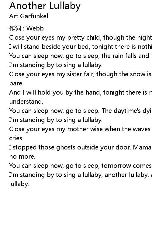 | I' m standing by to sing a lullaby, another lullaby, another lullaby, another lullaby. |