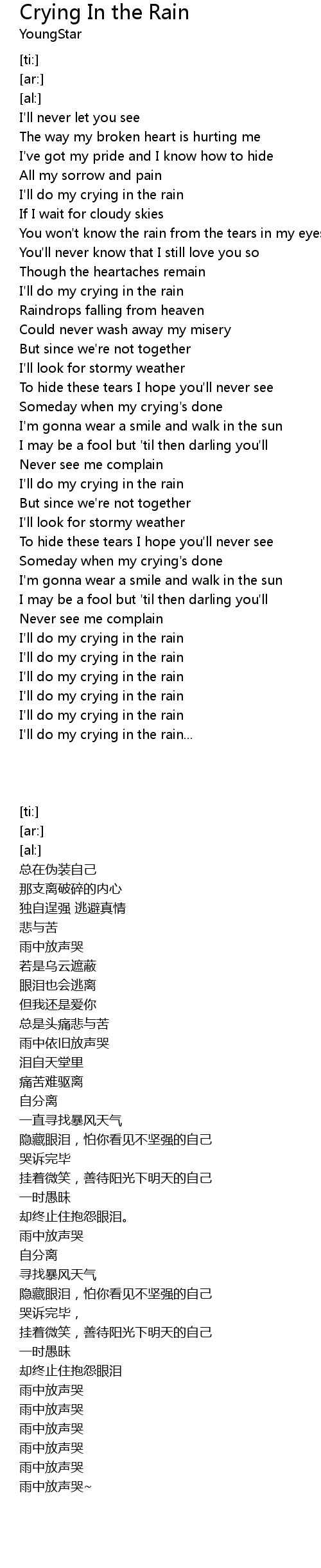 I'll do my crying in the rain... |