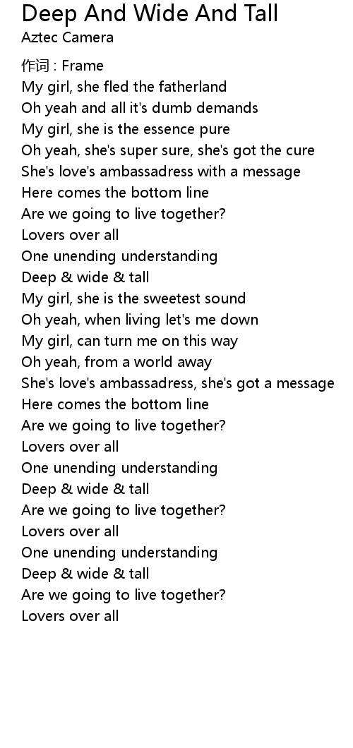 | Song | Deep And Wide And Tall |
