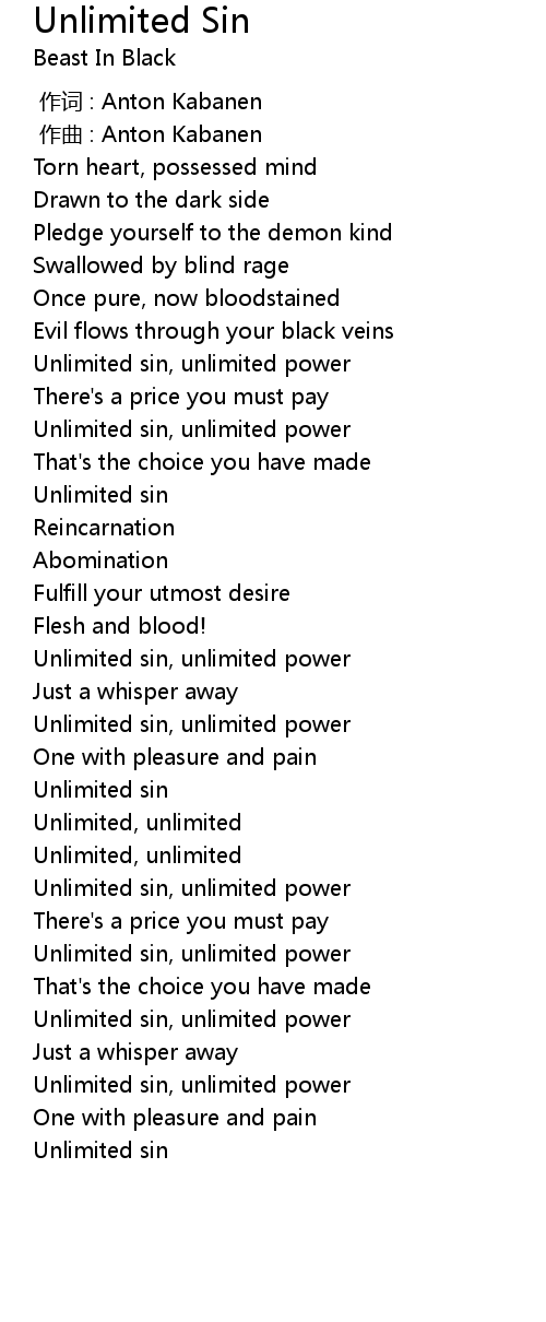 | [03:04.71] | Unlimited sin, unlimited power |