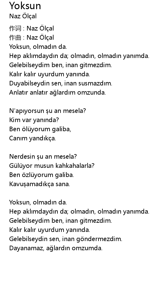 | Yoksun, olmad n da. | |
