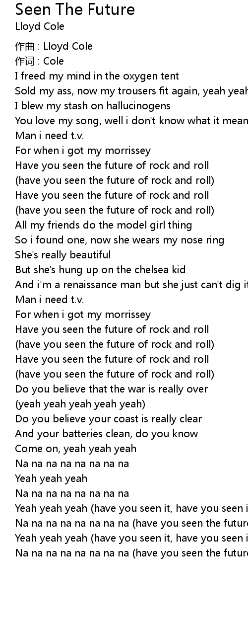 | Na na na na na na na na have you seen the future of rock and roll | |