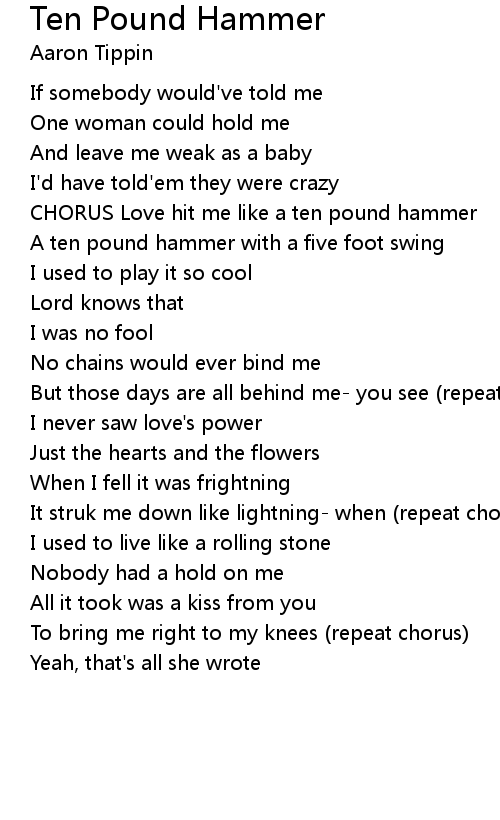 CHORUS Love hit me like a ten pound hammer |