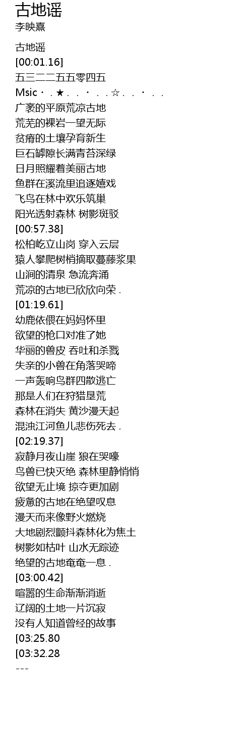 | [03:16.37] | 辽阔的土地一片沉寂 |