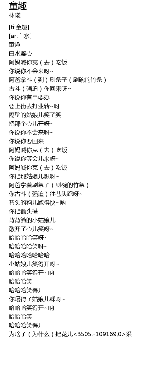 | [01:07.48] | 你古斗(强迫)往巷头跑呀~ |