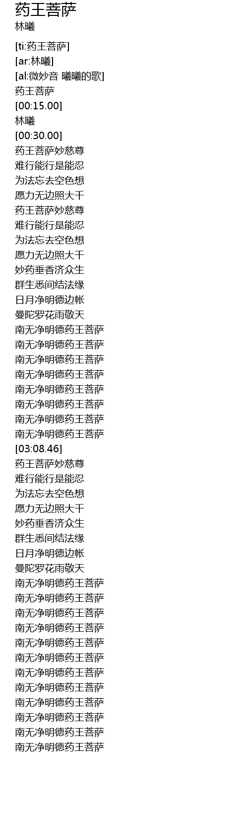 | [05:15.91] | 南无净明德药王菩萨 |