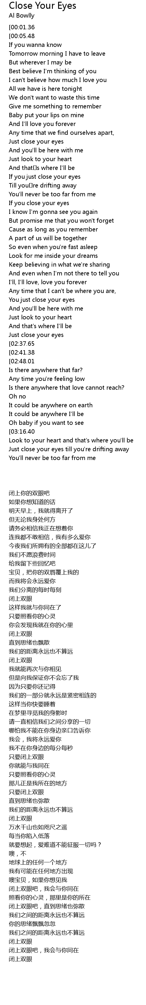 Close Your Eyes |