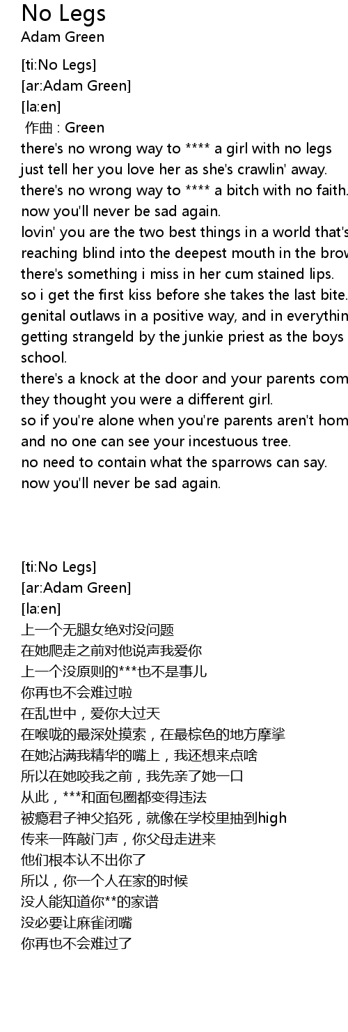 | [00:10.60] | there's no wrong way to **** a girl with no legs |