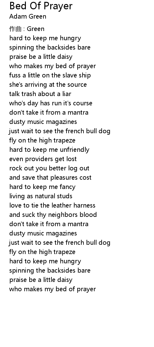 | who makes my bed of prayer | |