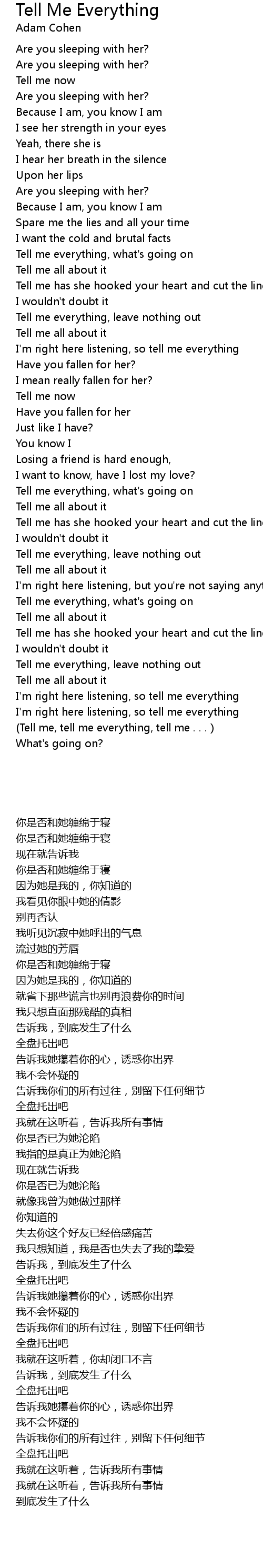 (Tell me, tell me everything, tell me . . . ) |