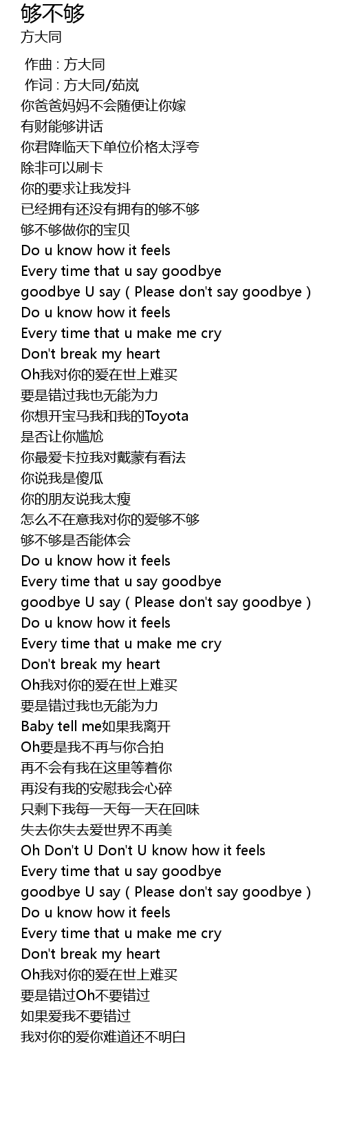 | [00:43.000] | goodbye U say Please don' t say goodbye |