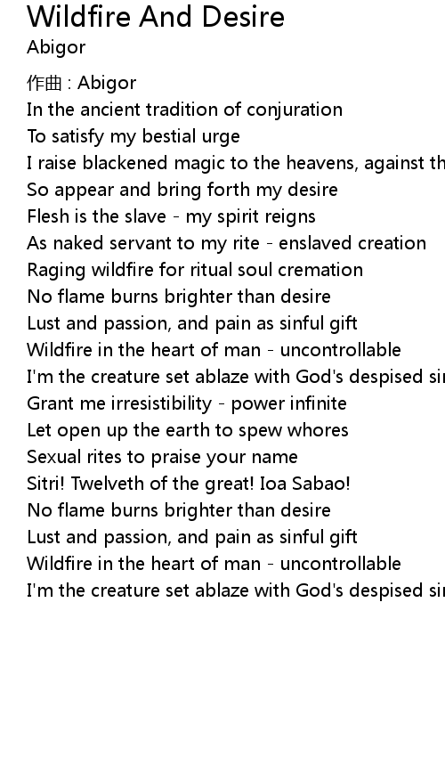 | Song | Wildfire And Desire |