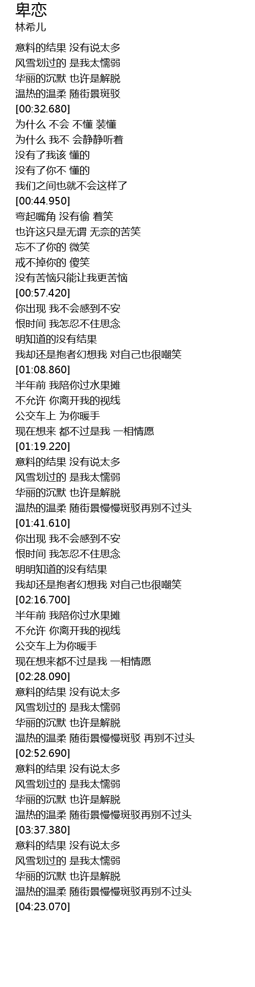 | [04:15.740] | 温热的温柔 随街景慢慢斑驳再别不过头 |