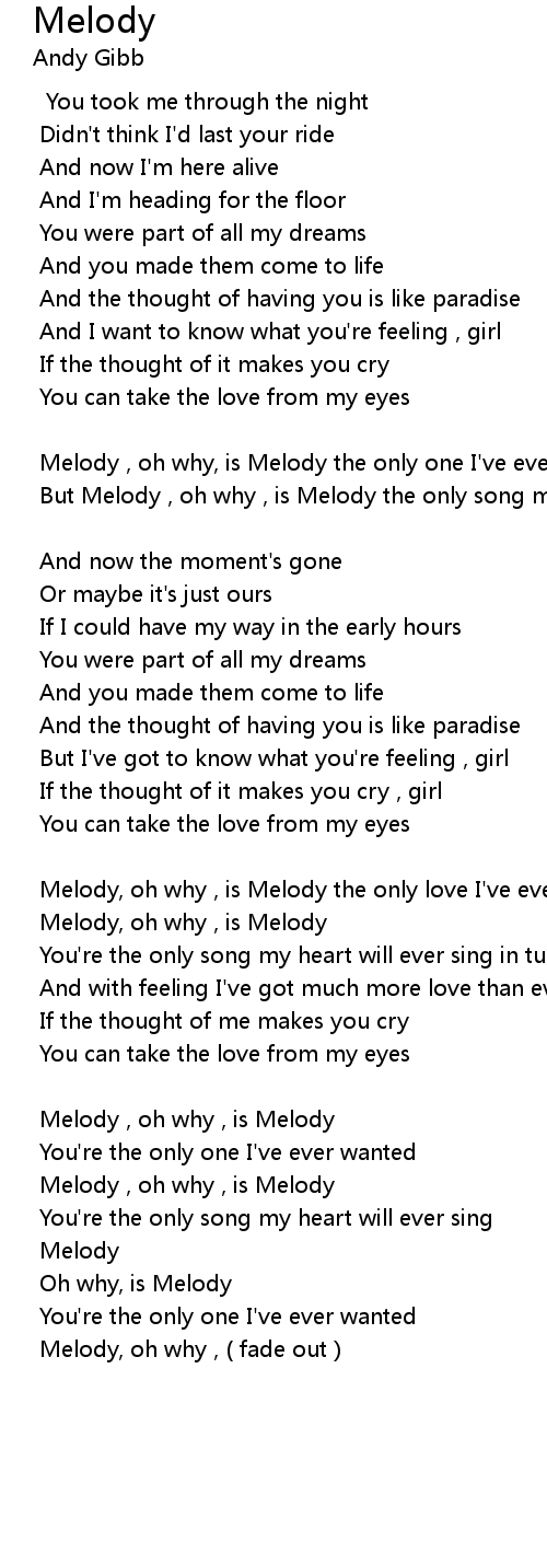 But Melody , oh why , is Melody the only song my heart will ever sing |