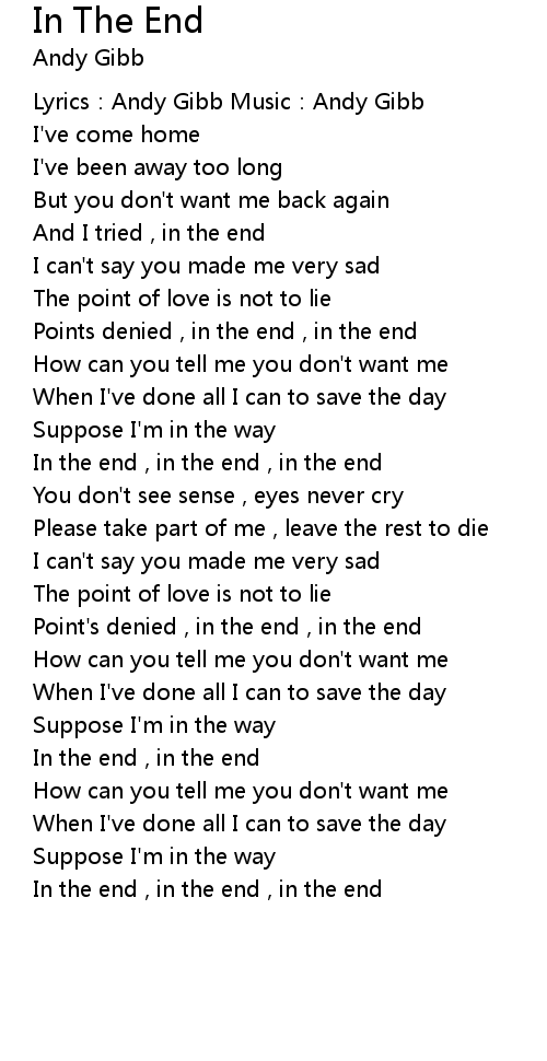 | In the end , in the end , in the end | |