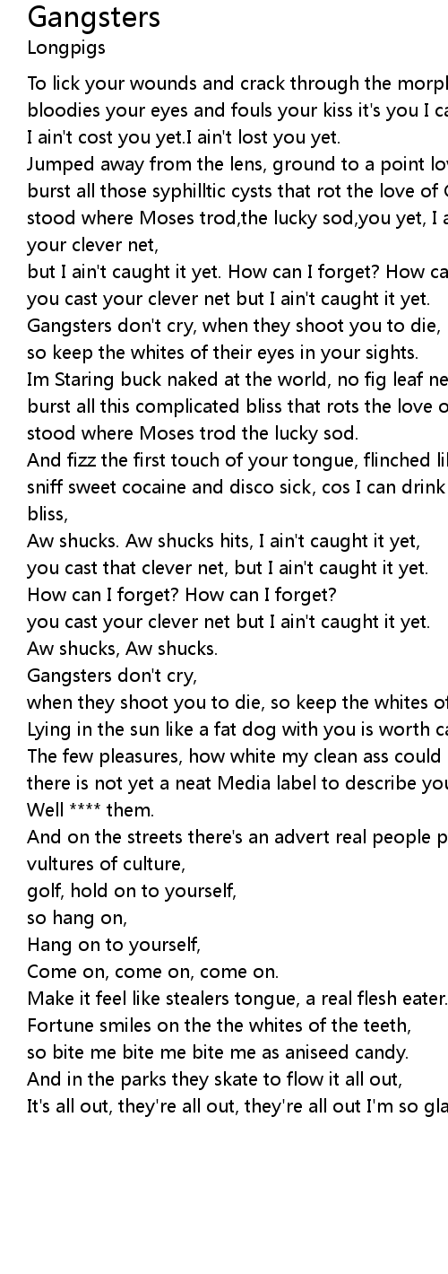 Gangsters don't cry, when they shoot you to die, |