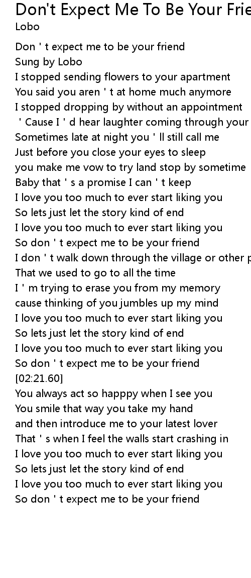 | [01:19.55] | So don t expect me to be your friend |