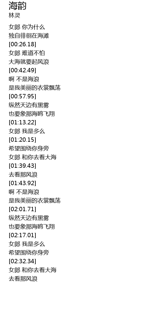 | [02:34.02] | 女郎 和你去看大海 |