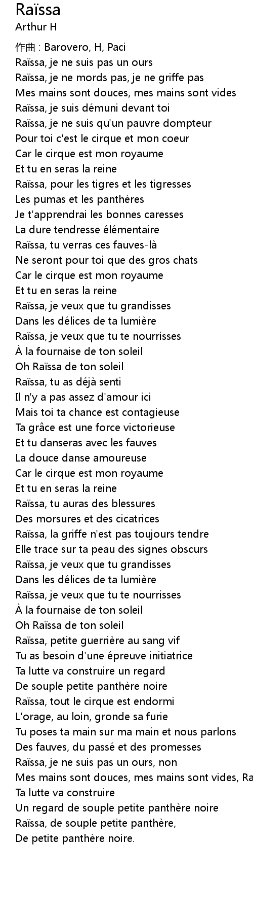 | Raïssa, je ne suis qu'un pauvre dompteur | |