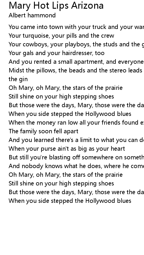 Oh Mary, oh Mary, the stars of the prairie |