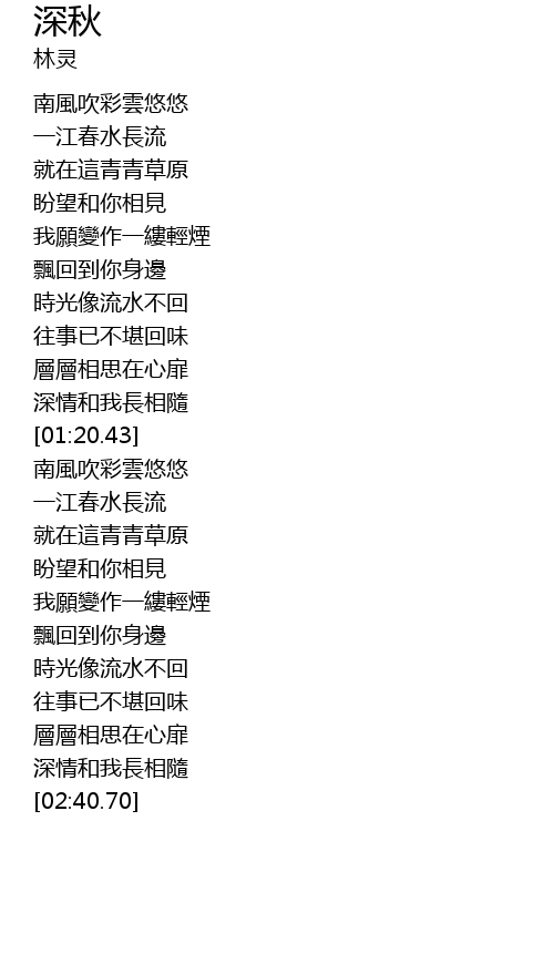 | [01:22.80] | nán fēng chuī cǎi yún yōu yōu |