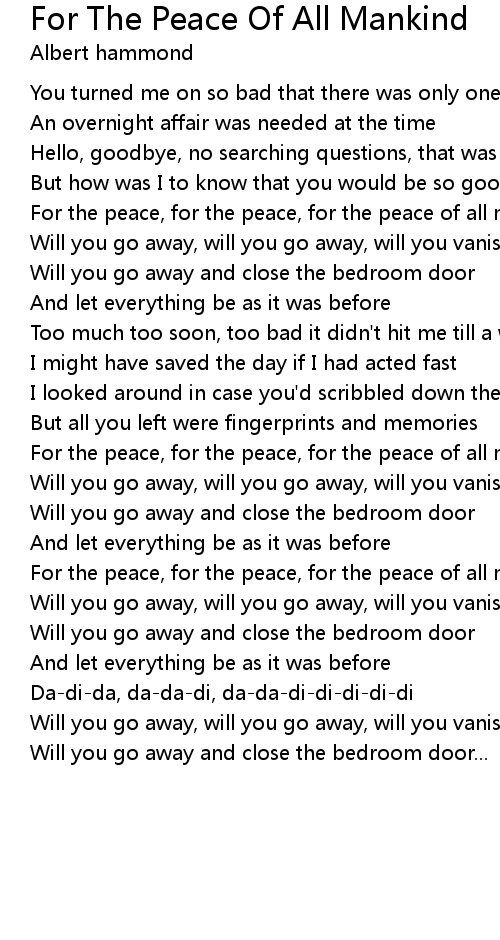 For the peace, for the peace, for the peace of all mankind |