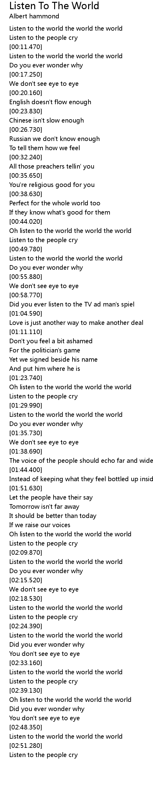 Listen to the world the world the world |