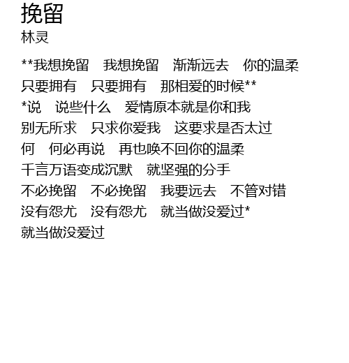 | **我想挽留 我想挽留 渐渐远去 你的温柔 | |