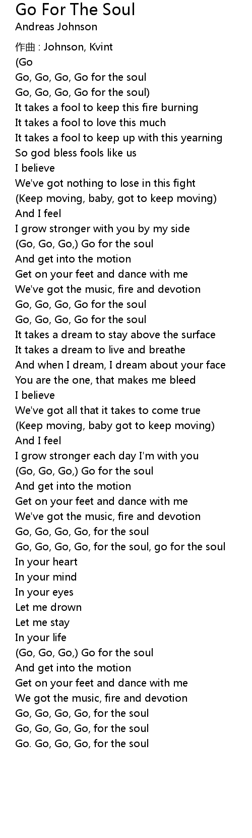 | Go, Go, Go, Go, for the soul, go for the soul | |