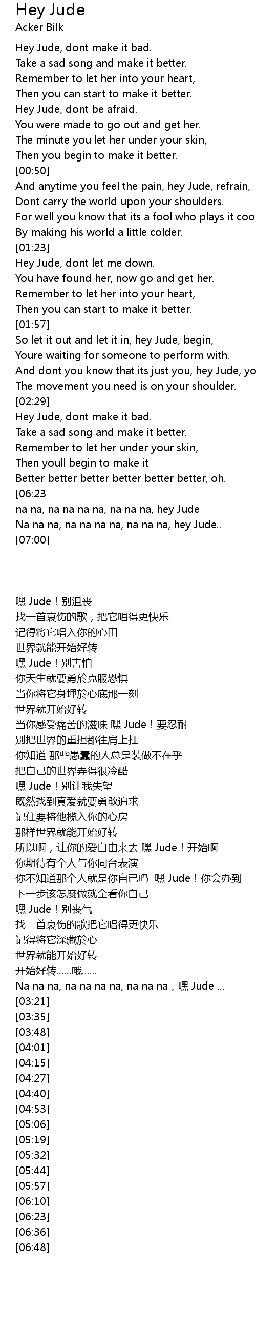 And dont you know that its just you, hey Jude, youll do, |