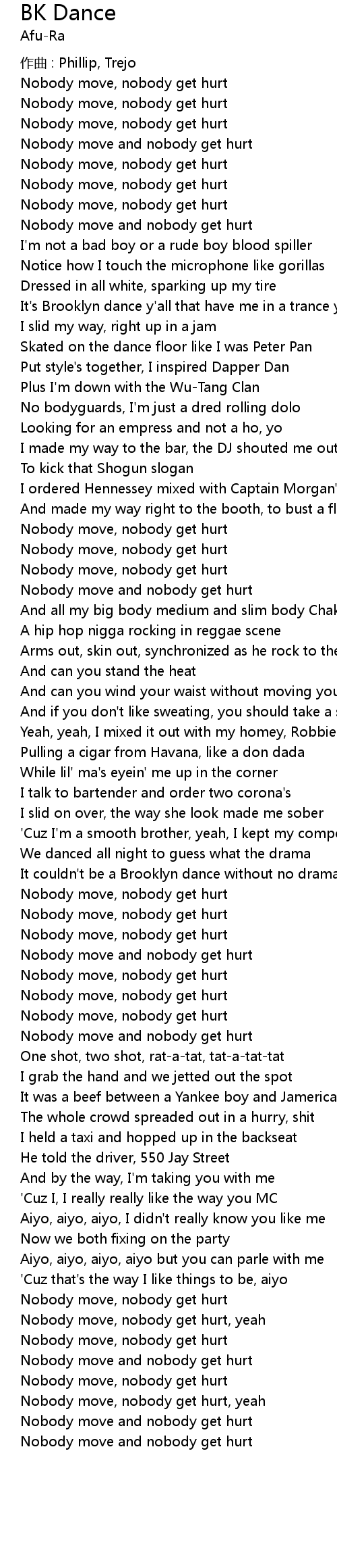 | Nobody move, nobody get hurt, yeah | |