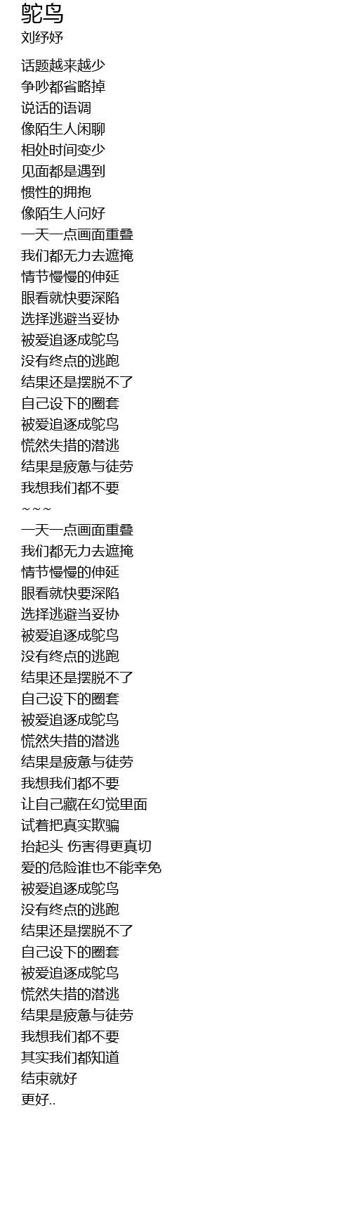 | [02:30.15] | 被爱追逐成鸵鸟 |